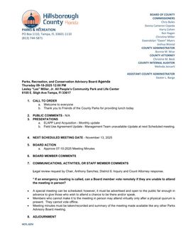 04-10-2025 -Parks Advisory Board Meeting Agenda