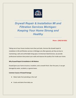 Drywall Repair & Installation MI and Filtration Services Michigan: Keeping Your Home Strong and Healthy