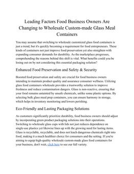 Leading Factors Meals Entrepreneurs Are Changing to Wholesale Custom-made Glass Meals Containers